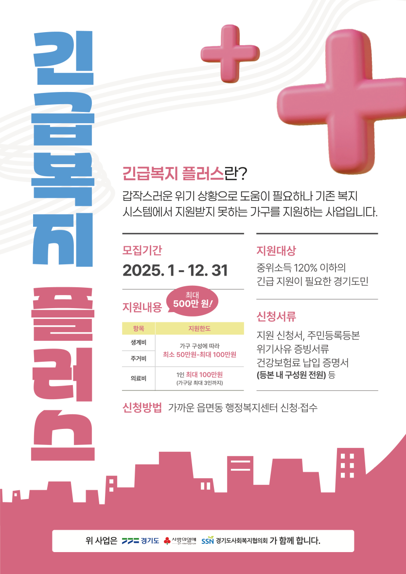 [경기도사회복지협의회] 2025년 '긴급복지 플러스' 사업 페이지 정보 작성자 원흥종합사회복지관 댓글 0건 조회585회 작성일 25-02-17 09:39 목록 본문 이전글[햇빛촌장애인자랍지원센터] 2025년 권리중심 중증장애인 맞춤형 공공일자리 참여자모집 25.02.17 다음글[고양시자원봉사센터] 덕양분소 아카데미 클래스(건강강좌) 25.02.13 댓글 0개 댓글목록 등록된 댓글이 없습니다.