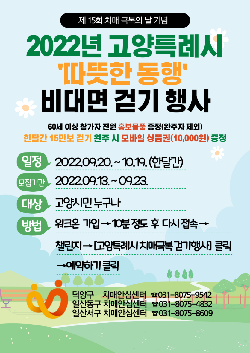 [덕양구보건소] 치매극복의날 기념 걷기행사 페이지 정보 작성자 관리자 댓글 0건 조회866회 작성일 22-09-26 09:05 목록 본문 이전글[고양시자살예방센터]죽음을 꿈꾸는 아이들 22.10.21 다음글[월드비전] 2022년 월드비전 글로벌 6K 캠페인 참여 안내 22.09.05 댓글 0개 댓글목록 등록된 댓글이 없습니다.