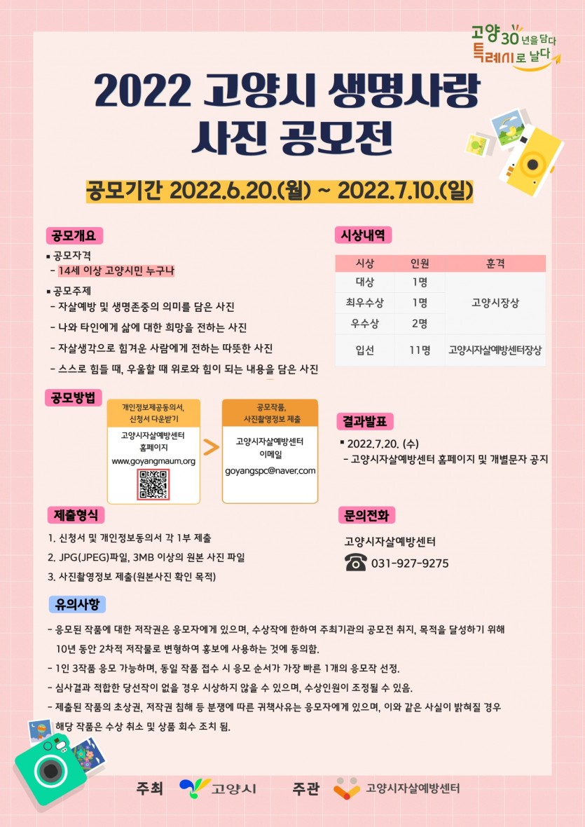 [고양시자살예방센터] 2022년 고양시 생명사랑 사진 공모전 페이지 정보 작성자 관리자 댓글 0건 조회859회 작성일 22-06-13 09:45 목록 본문 이전글[고양시청]2022년 고양특례시 기후환경학교 22.06.24 다음글[일산장애인자립생활센터] 성인중증발달장애인 "감정아 놀자" 참여자 모집안내 22.06.08 댓글 0개 댓글목록 등록된 댓글이 없습니다.