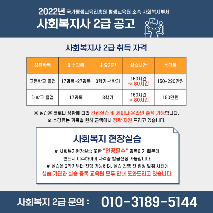 [공고] 2022년 사회복지2급 3학기 과정 안내