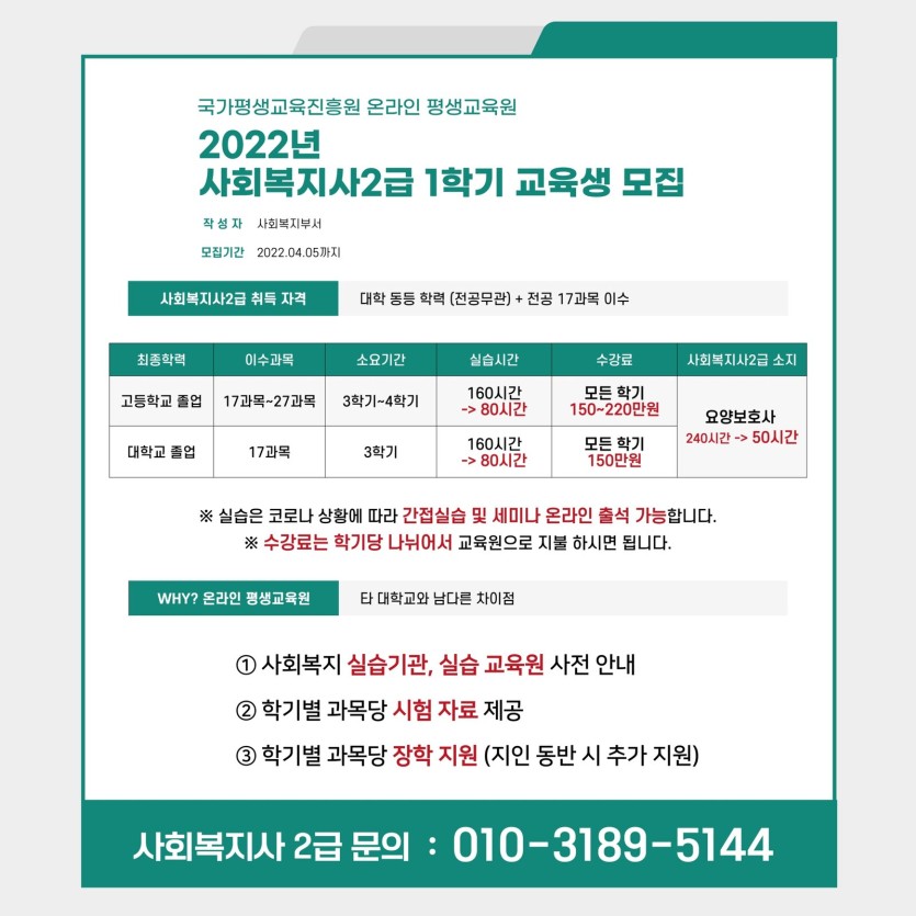 [안내] 사회복지2급, 11개월 기간 마지막 기회