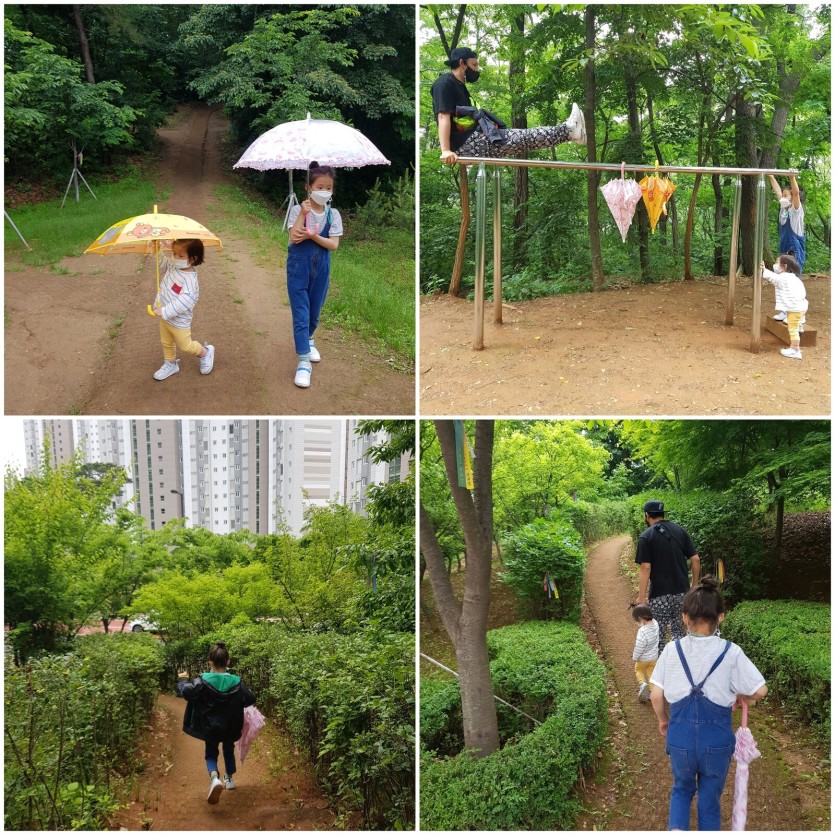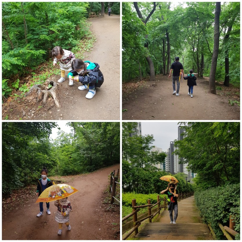 또 산 속에서는 나뭇잎이 비를 막아주어 힘들지만 재미있는 시간이 되었습니다.