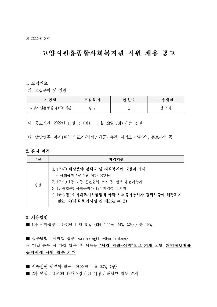 채용공고 직원(팀장) 채용 공고 페이지 정보 작성자 관리자 댓글 0건 조회1,540회 작성일 22-11-15 19:54 목록 본문 이전글11월 3째주 정성가득식당 식단 안내 22.11.15 다음글11월 2째주 정성가득식당 식단 안내 22.11.09 댓글 0개 댓글목록 등록된 댓글이 없습니다.