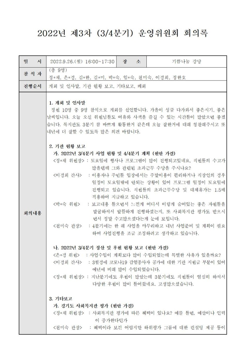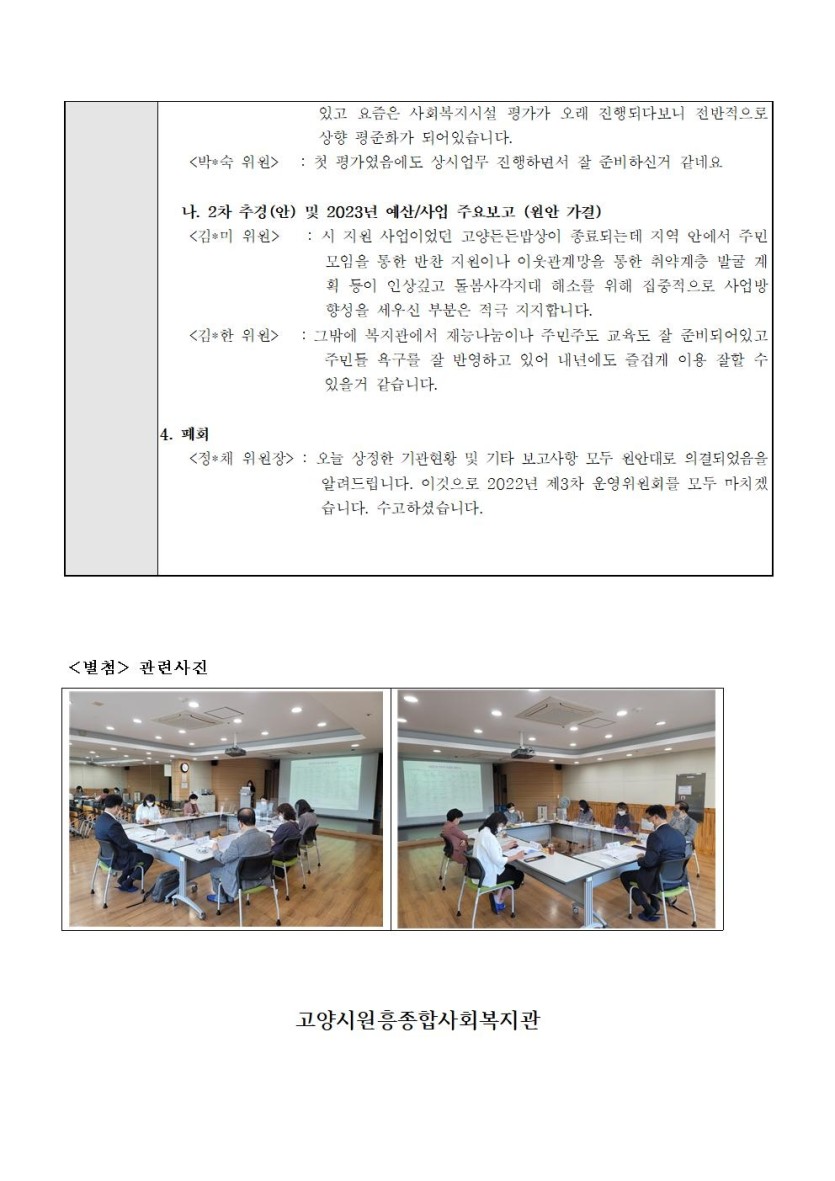 고양시원흥종합사회복지관 2022년 제1차 운영위원회 회의록을 붙임과 같이 공고합니다.