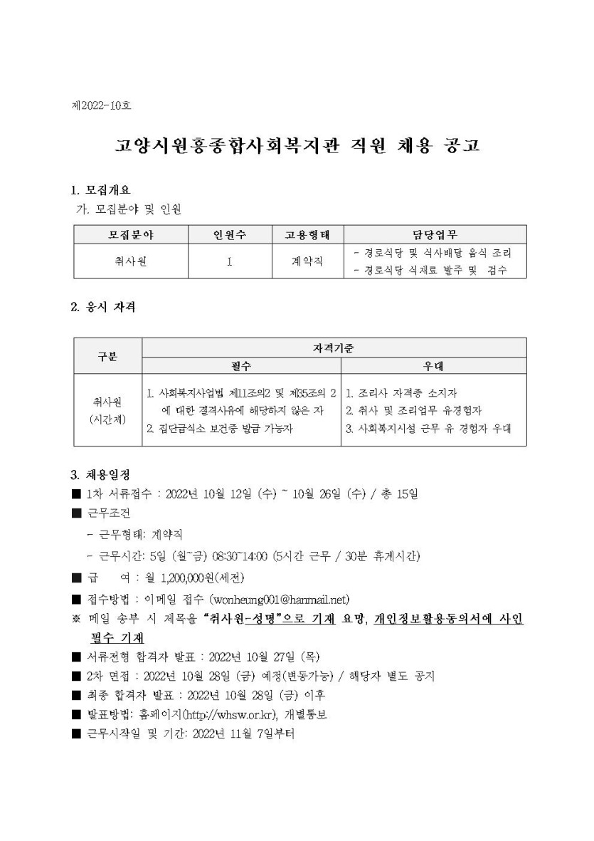 채용공고 직원(취사원) 채용 공고 페이지 정보 작성자 관리자 댓글 0건 조회1,598회 작성일 22-10-12 10:47 목록 본문 이전글3월 4째주 정성가득식당 식단 안내 23.03.17 다음글3월 3째주 정성가득식당 식단 안내 23.03.10 댓글 0개 댓글목록 등록된 댓글이 없습니다.