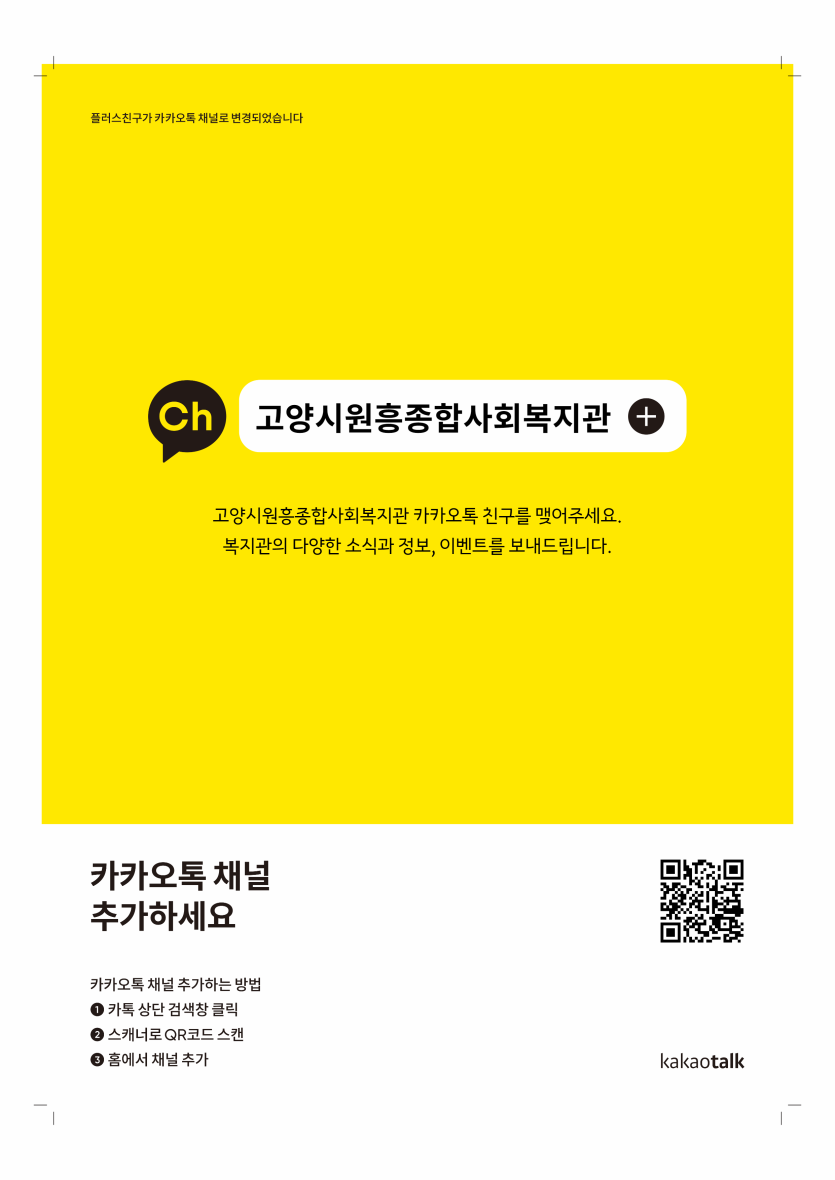 일반 고양시원흥종합사회복지관 카카오톡 채널 추가 안내 페이지 정보 작성자 관리자 댓글 0건 조회1,881회 작성일 22-02-21 10:03 목록 본문 카카오톡 채널http://pf.kakao.com/_rlLxjb 이전글직원채용(팀장) 서류전형 합격자 공지 22.01.17 다음글복지관 아이스팩 전용수거함 이용안내 22.03.21 댓글 0개 댓글목록 등록된 댓글이 없습니다.