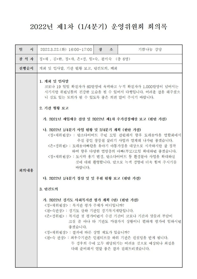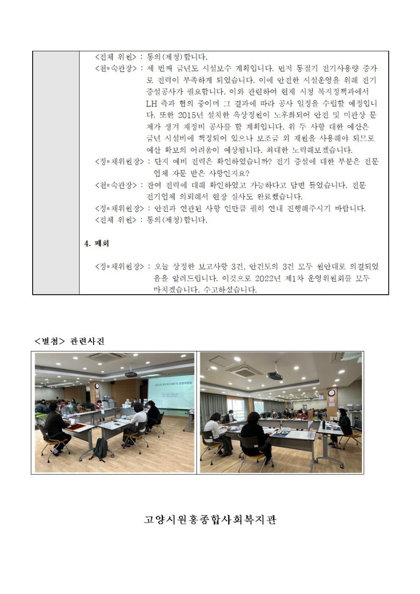 고양시원흥종합사회복지관 2022년 제1차 운영위원회 회의록을 붙임과 같이 공고합니다.