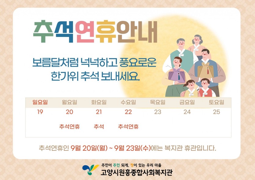 일반 추석연휴안내 페이지 정보 작성자 관리자 댓글 0건 조회1,811회 작성일 21-09-16 21:20 목록 본문 이전글2021년 추석맞이 특식 기금마련행사 <놀러와 우리동네 마을장터 놀장> 진행 21.09.08 다음글직원채용 최종 합격자 공지 21.09.16 댓글 0개 댓글목록 등록된 댓글이 없습니다.