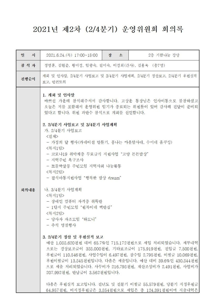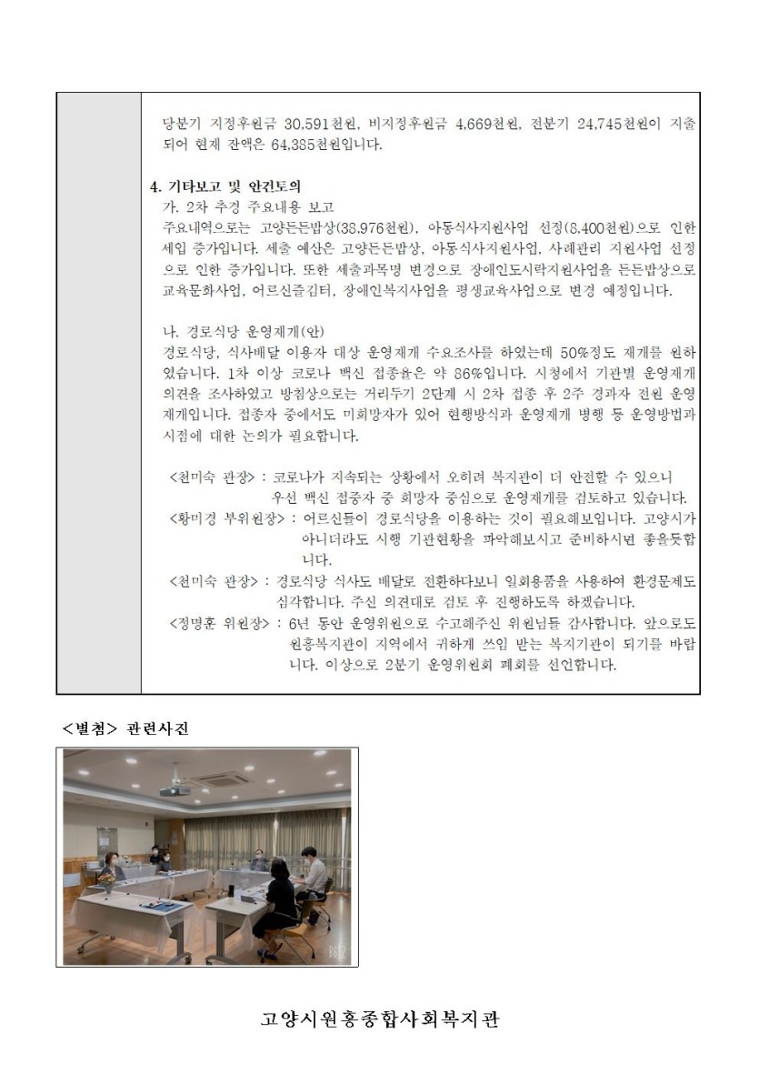 고양시원흥종합사회복지관 2021년 제2차 운영위원회 회의록을 붙임과 같이 공고합니다.