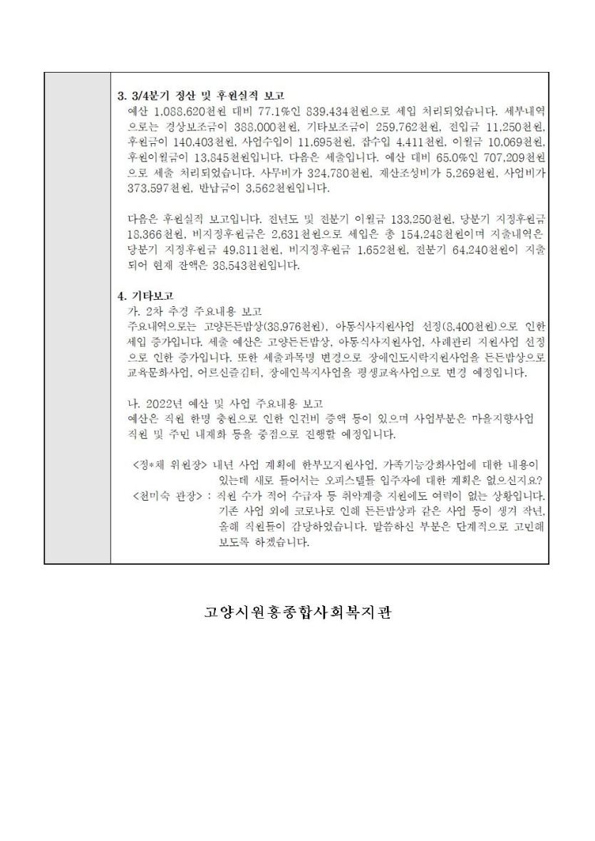 고양시원흥종합사회복지관 2021년 제3차 운영위원회 회의록을 붙임과 같이 공고합니다.