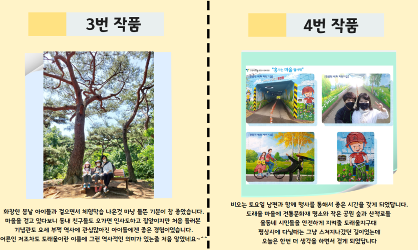** 포토후기 선정된 분들께서는 도래울마을 상가 식사할인권 1만원권 3장을 드리며,