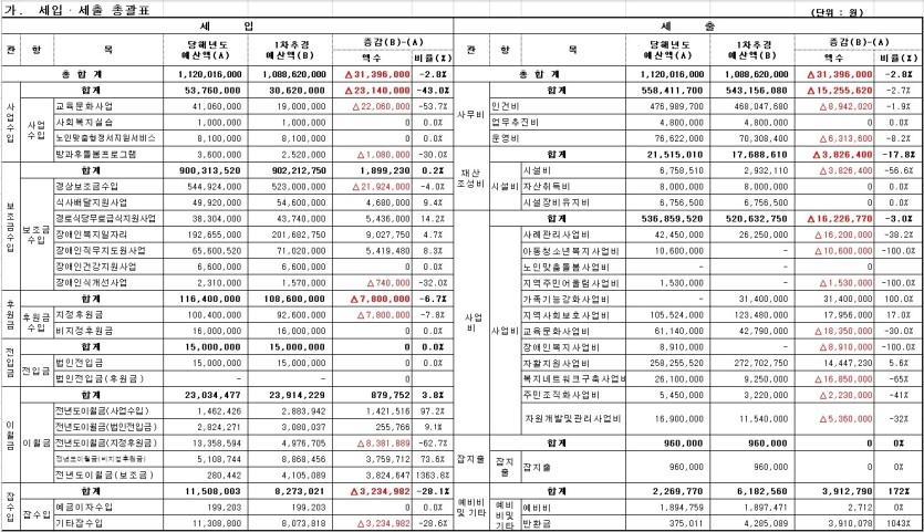 다. 공고내용 : 고양시원흥종합사회복지관 2021년 1차 추가경정 예산서