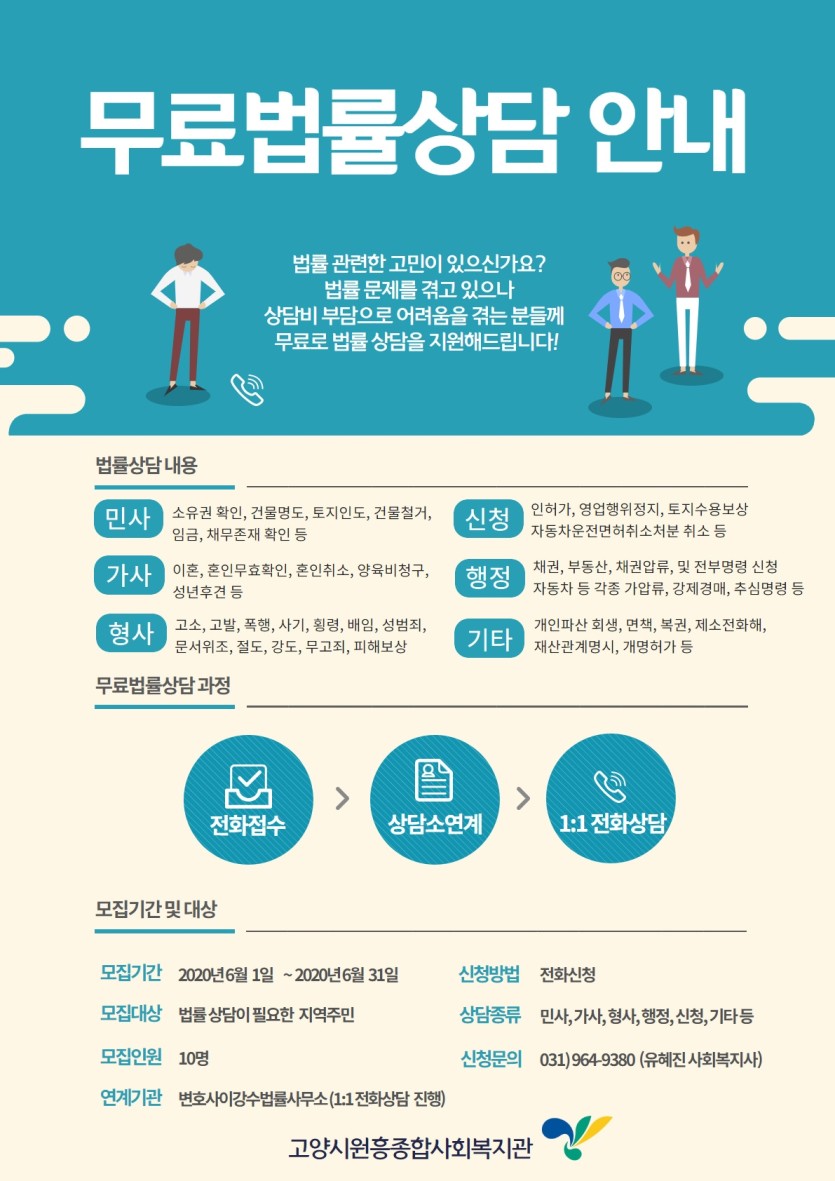 고양시원흥종합사회복지관에서 무료법률 상담을 지원합니다.