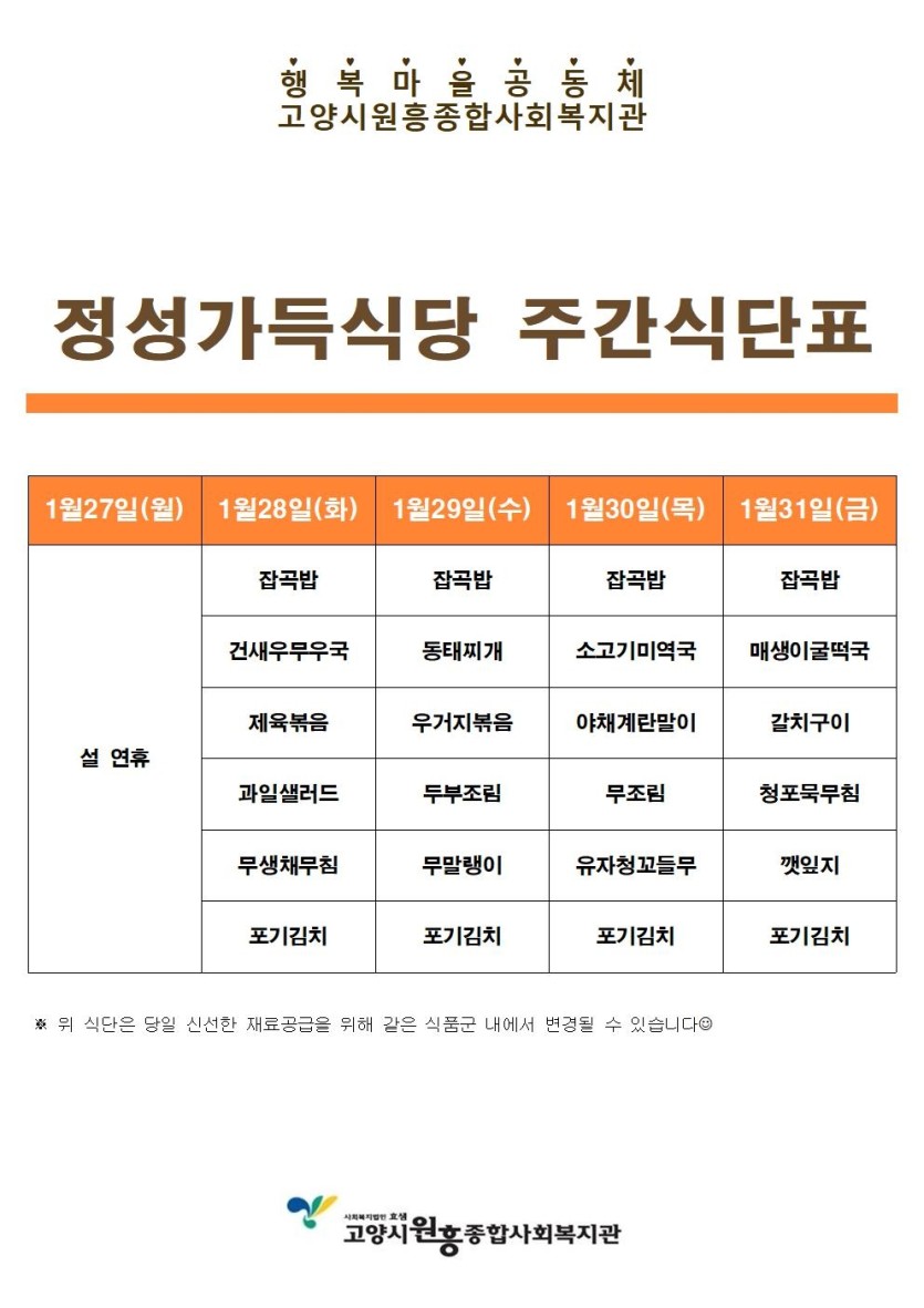 일반 정성가득식당 1월 5주 식단 안내 페이지 정보 작성자 관리자 댓글 0건 조회1,742회 작성일 20-01-23 09:30 목록 본문 이전글경력직 사회복지사 채용 공고 20.01.31 다음글2020년 설 행사 설, 레는 마음 가득 나누다' 20.01.17 댓글 0개 댓글목록 등록된 댓글이 없습니다.