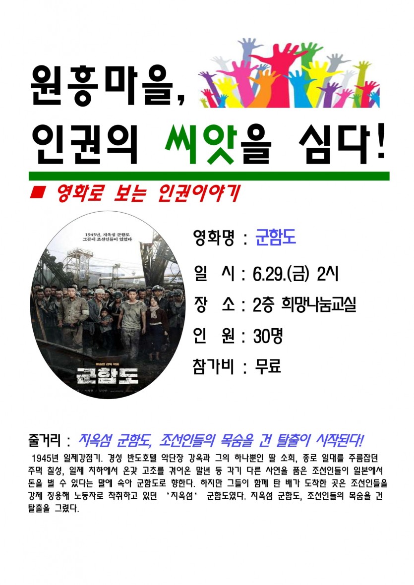 일반 6월 원흥시네마 안내 페이지 정보 작성자 관리자 댓글 0건 조회1,852회 작성일 18-06-15 16:01 목록 본문 이전글5월 복지관 휴관 안내 18.04.24 다음글개인정보보호 교육 안내 18.06.04 댓글 0개 댓글목록 등록된 댓글이 없습니다.