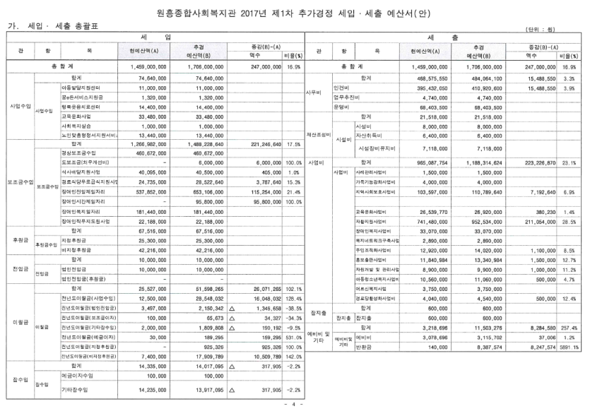 재정알림 2017년 고양시원흥종합사회복지관 제1차추가경정예산(안) 공고
