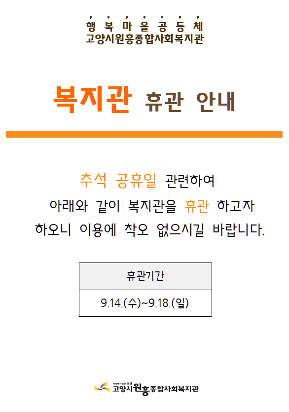 일반 추석 관련 휴관안내 페이지 정보 작성자 관리자 댓글 0건 조회1,935회 작성일 16-09-06 19:48 목록 본문 이전글건의사항 조치 결과 안내 (2016.9.5.) 16.09.09 다음글2017년도 고양시원흥종합사회복지관 주부식 공급업체 입찰 낙찰자 발표 17.03.09 댓글 0개 댓글목록 등록된 댓글이 없습니다.