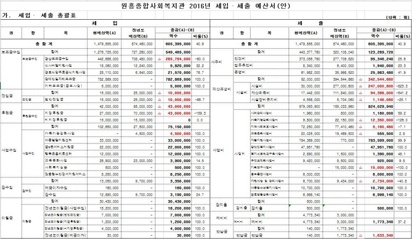 재정알림 2016년 고양시원흥종합사회복지관 예산(안) 공고
