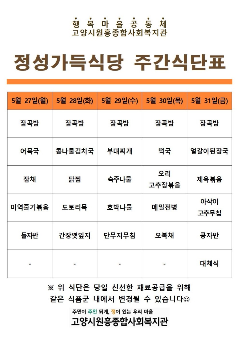 일반 5월 4째주 정성가득식당 식단 안내 페이지 정보 작성자 관리자 댓글 0건 조회1,816회 작성일 24-05-23 17:58 목록 본문 이전글2024년 하계방학 사회복지 현장실습 서류전형 합격자 공지 24.05.29 다음글2024년 1분기 수의계약 내역 공지 24.05.21 댓글 0개 댓글목록 등록된 댓글이 없습니다.