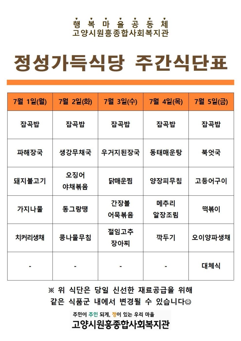 일반 7월 1째주 정성가득식당 식단 안내 페이지 정보 작성자 관리자 댓글 0건 조회1,797회 작성일 24-06-27 18:43 목록 본문 이전글7월 2째주 정성가득식당 식단 안내 24.07.06 다음글6월 4째주 정성가득식당 식단 안내 24.06.20 댓글 0개 댓글목록 등록된 댓글이 없습니다.