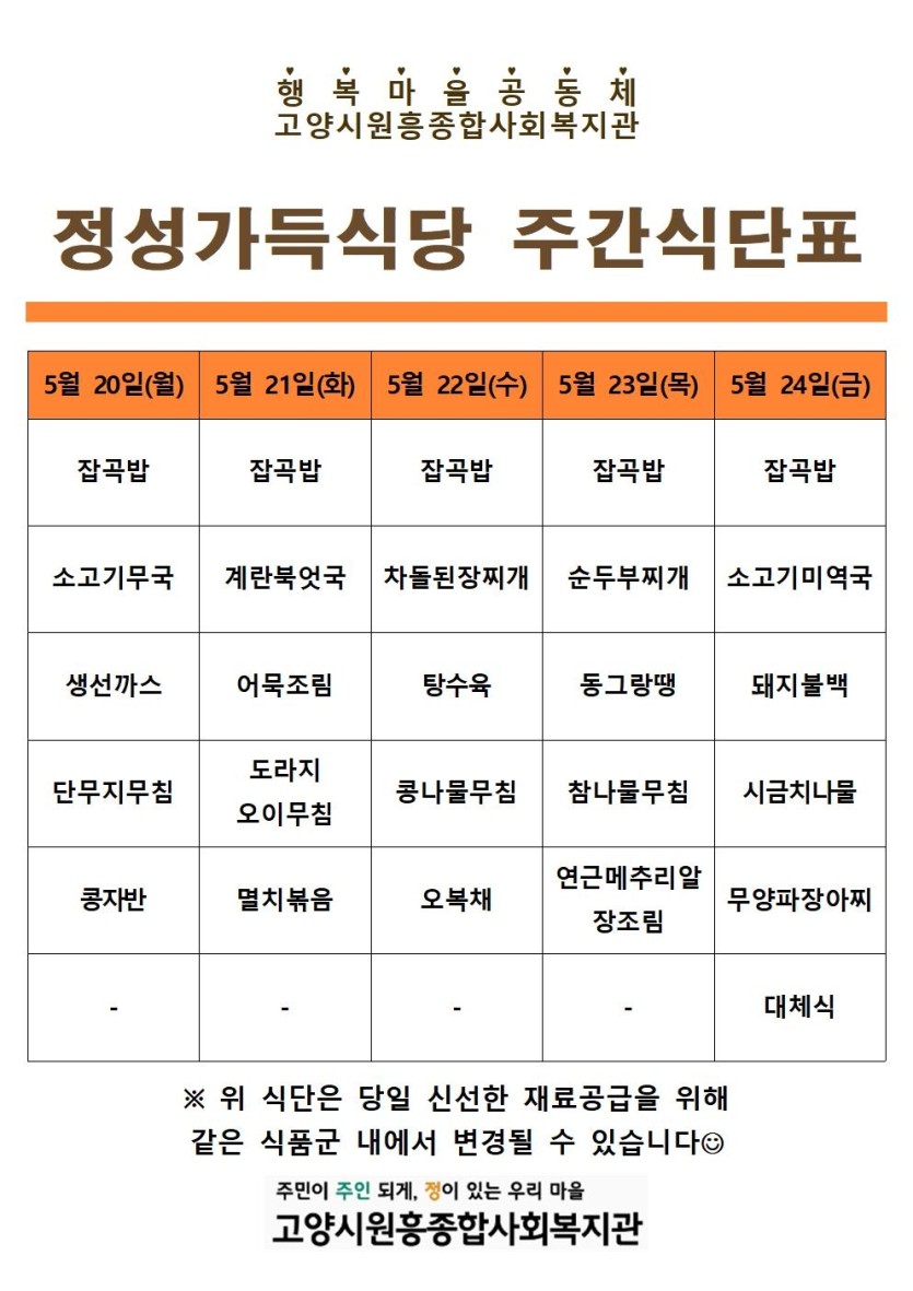 일반 5월 3째주 정성가득식당 식단 안내 페이지 정보 작성자 관리자 댓글 0건 조회1,837회 작성일 24-05-16 16:53 목록 본문 이전글팀장 채용 서류전형 합격자 공고 24.05.23 다음글2024년 하계 사회복지현장 실습생 모집 공고 24.05.13 댓글 0개 댓글목록 등록된 댓글이 없습니다.
