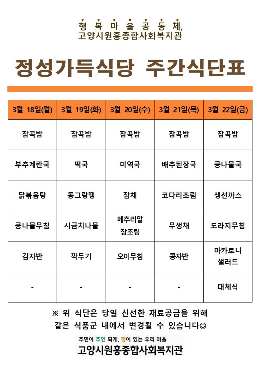 일반 3월 3째주 정성가득식당 식단 안내 페이지 정보 작성자 관리자 댓글 0건 조회1,798회 작성일 24-03-12 17:45 목록 본문 이전글3월 4째주 정성가득식당 식단 안내 24.03.12 다음글7월 4째주 정성가득식당 식단 안내 24.07.19 댓글 0개 댓글목록 등록된 댓글이 없습니다.