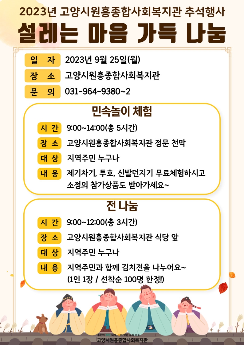 2023년 추석을 맞이하여 9월 25일(월)에 '설레는 마음 가득 나눔'행사를 진행합니다.