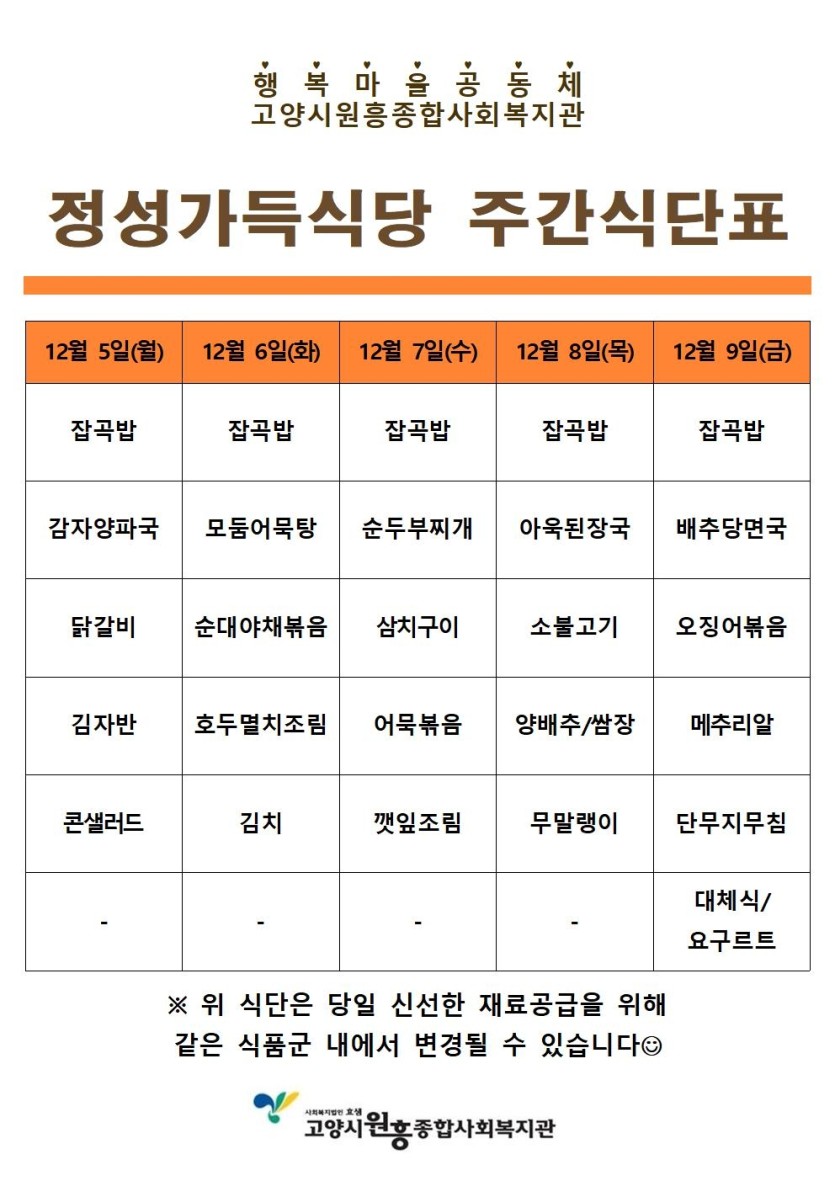일반 12월 1째주 정성가득식당 식단 안내 페이지 정보 작성자 관리자 댓글 0건 조회1,530회 작성일 22-12-05 12:22 목록 본문 이전글직원(취사원) 채용 공고 22.12.07 다음글직원(팀장) 채용 최종합격자 명단 공지 22.12.02 댓글 0개 댓글목록 등록된 댓글이 없습니다.