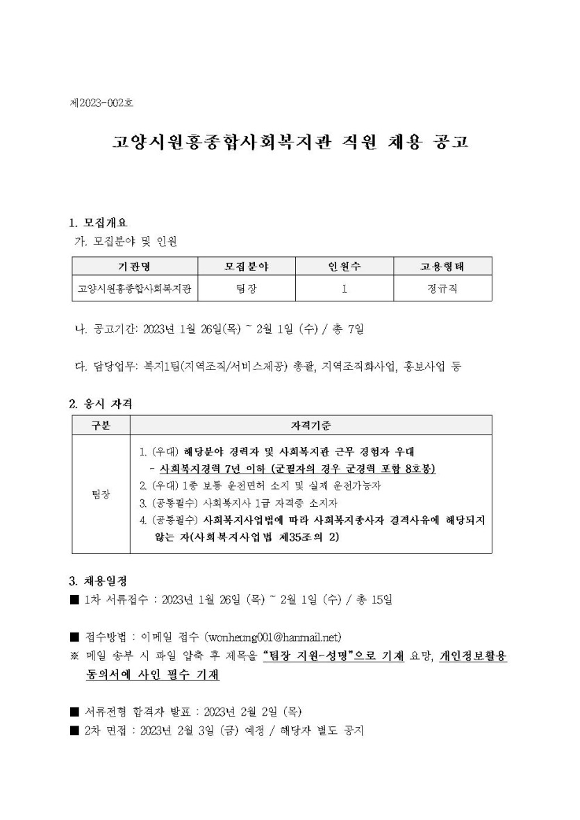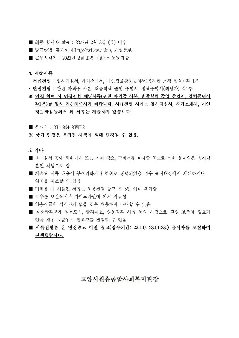 채용공고 직원(팀장) 채용 연장 공고 페이지 정보 작성자 관리자 댓글 0건 조회1,582회 작성일 23-01-26 13:42 목록 본문 첨부파일 입사지원서 양식(2023).hwp (18.5K) 이전글2월 첫째주, 둘째주 정성가득식당 식단 안내 23.02.06 다음글직원(팀장) 채용 공고 23.01.20 댓글 0개 댓글목록 등록된 댓글이 없습니다.