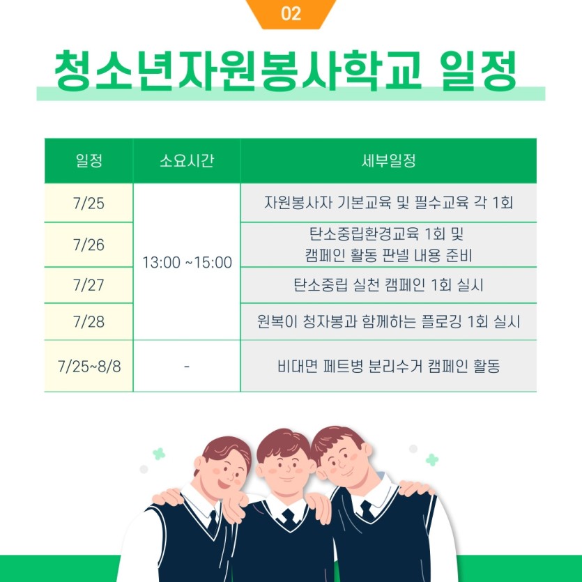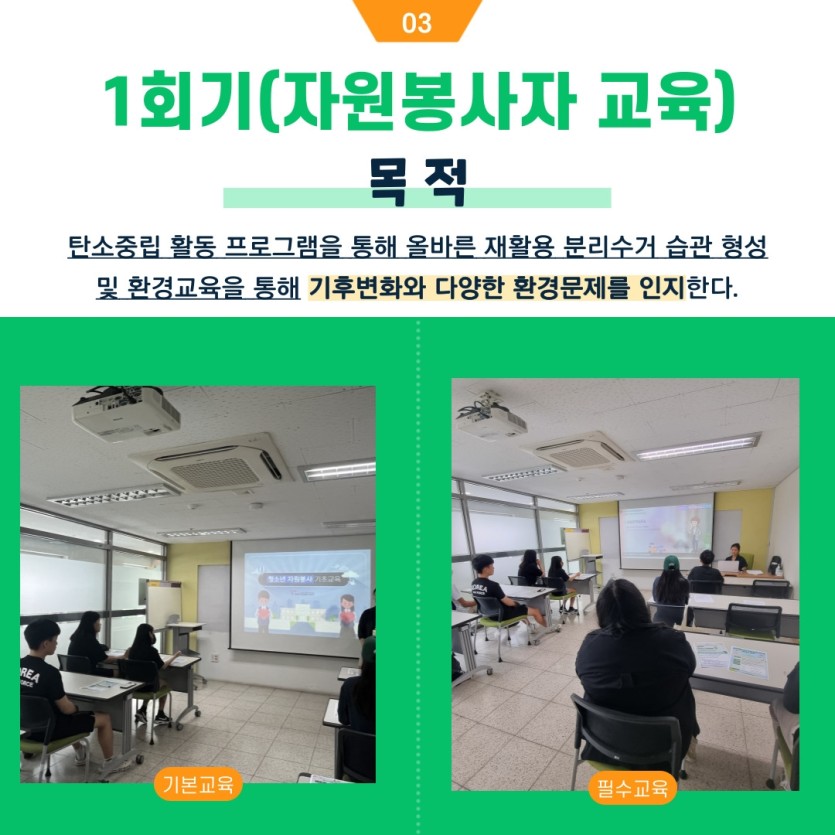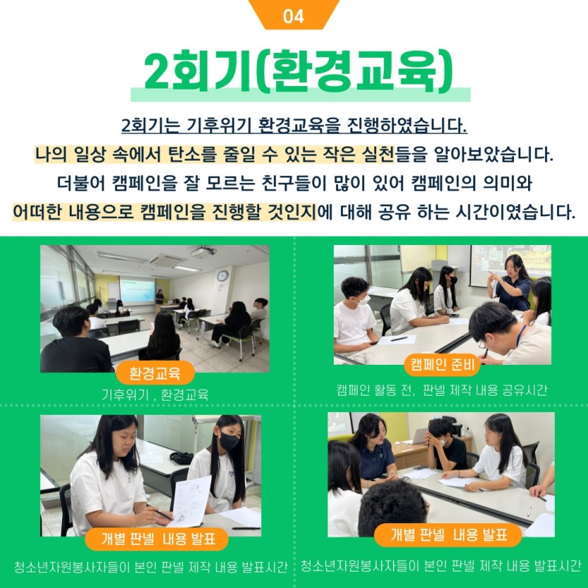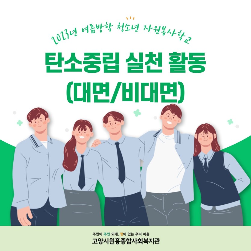 2023년 여름방학을 맞이한 청소년들을 대상으로 청소년자원봉사학교를 개강 하였습니다. 이번 청소년자원봉사학교에서는 탄소중립 실천 활동 주제로 총 4회(7.25(화)~7.28(금))를
