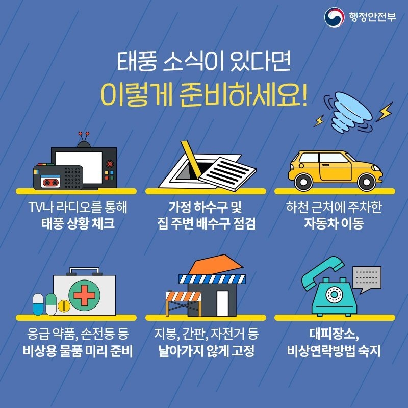 외출 자제, 응급 상황 대비 사전 비상 연락망 숙지, 대피장소 파악 등 대비 방법을 알아보고 피해를 사전에 예방하시길 바랍니다.