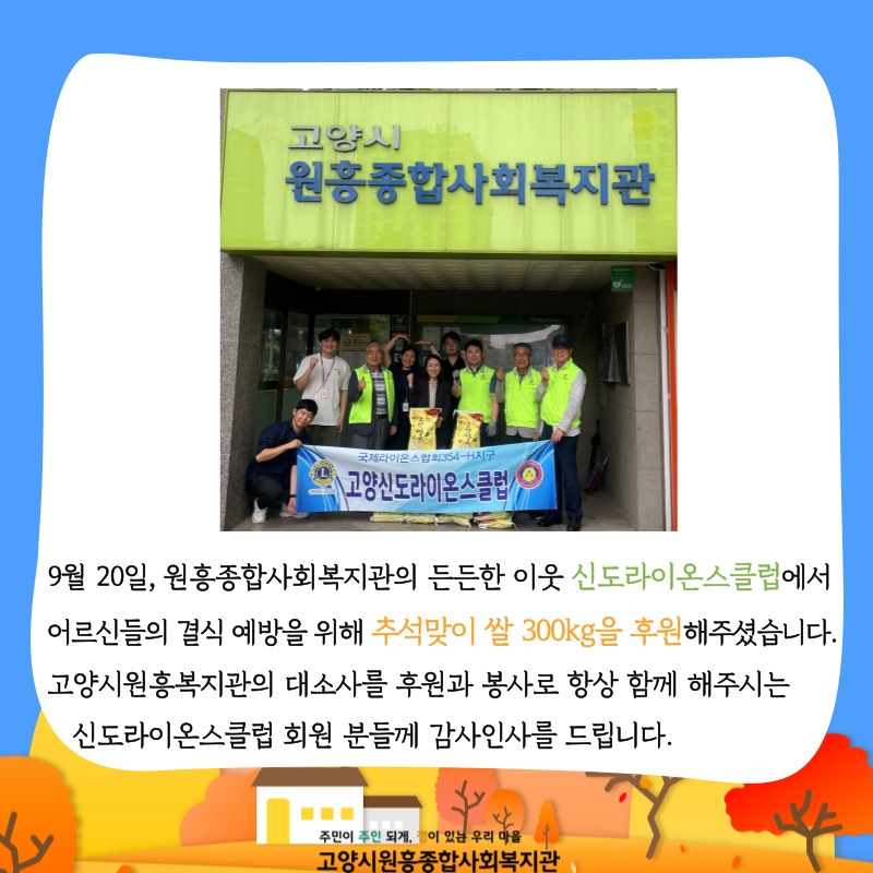 9월 후원품 전달식(신도라이온스클럽) 페이지 정보 작성자 관리자 댓글 0건 조회630회 작성일 23-09-25 16:25 목록 본문 이전글아동식사지원사업 '건강한 한끼' 1회기 진행 23.10.26 다음글2023년 풍요롭고 넉넉한 한가위 보내세요♥ 23.09.20 댓글 0 댓글목록 등록된 댓글이 없습니다.