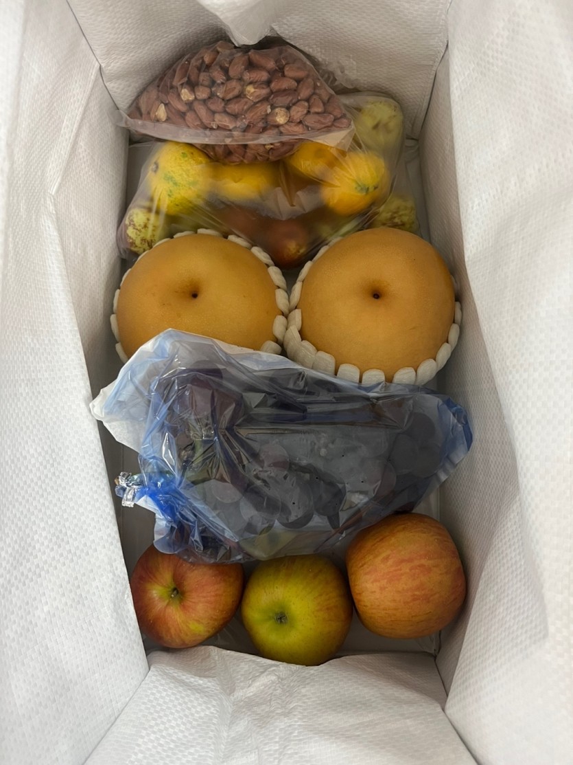추석연휴가 지나고 날씨가 많이 선선해져 대상자분들의 대부분이 집에서만 계시기 때문에 집에서 심심할 때 입가심으로 땅콩을 드실수 있게 과일과 함께 땅콩 묶음으로도 후원을 해주셨습니다.