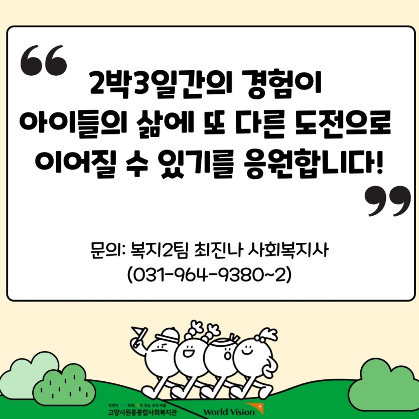 2박3일간의 경험이 아이들의 삶에 또 다른 도전으로 이어질 수 있기를 바랍니다.