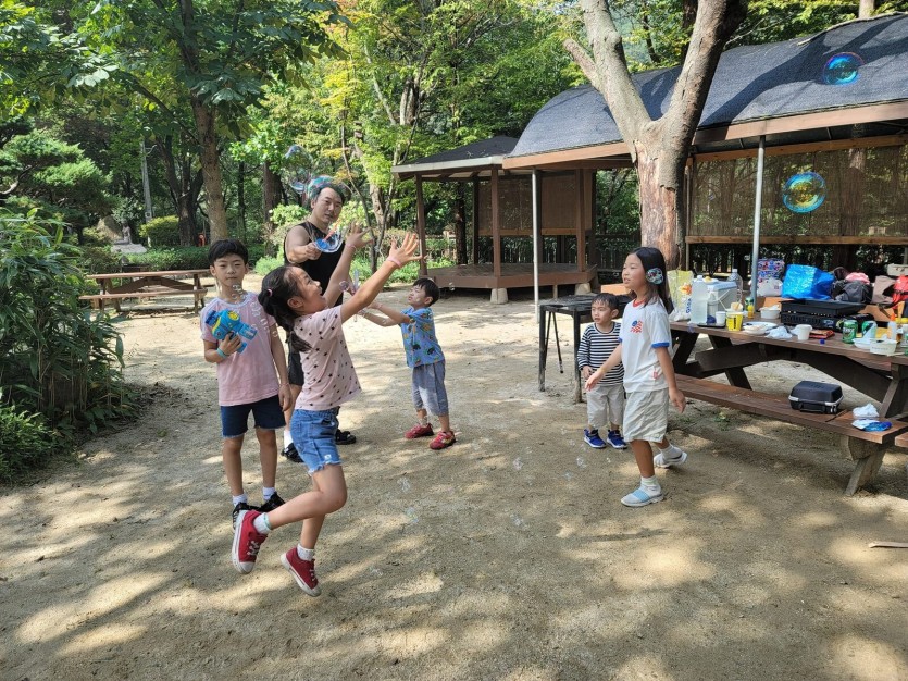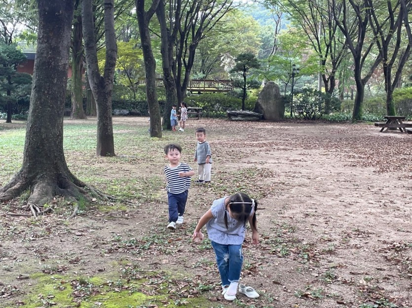 아이들이 자연에서 친구들과 뛰어놀고 숨박꼭질, 무궁화꽃이 피었습니다 등 아빠들과 놀이활동을 통해 즐거운 시간을 보냈습니다.