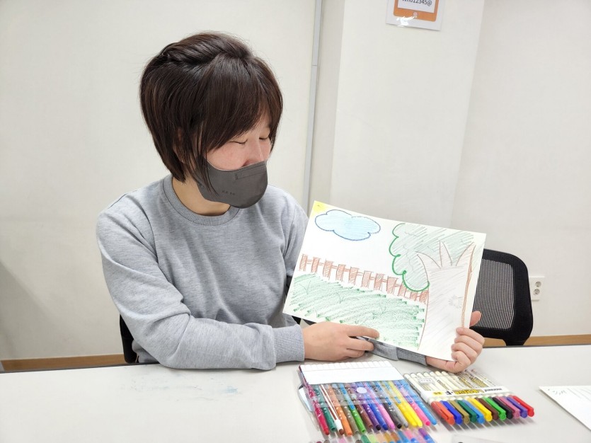 이로인해 자신을 나타내는 나무가[ 왜 그렇게 그렸는지, 어떠한 생각을 가지고 그린 것인지]를 나누며 자신을 표현해보는 시간을 가짐으로써