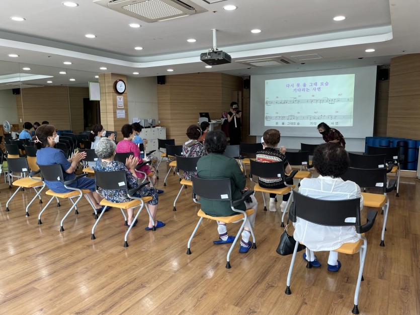 또한 비말프로그램 '노래교실'은 실내 마스크 착용 후 진행되며, 프로그램 종료 후 소독을 철저히 하며 비말 감염예방을 철저히 진행하고 있습니다.
