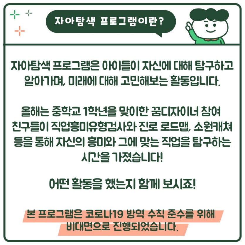 2022년 꿈디자이너 자아탐색 프로그램 페이지 정보 작성자 관리자 댓글 0건 조회558회 작성일 22-04-16 03:06 목록 본문 이전글2022년 꿈디자이너 비전원정대 1회기 22.06.14 다음글2022년 아동청소년 여름방학특강 붓글씨교육 진행 22.07.29 댓글 0 댓글목록 등록된 댓글이 없습니다.