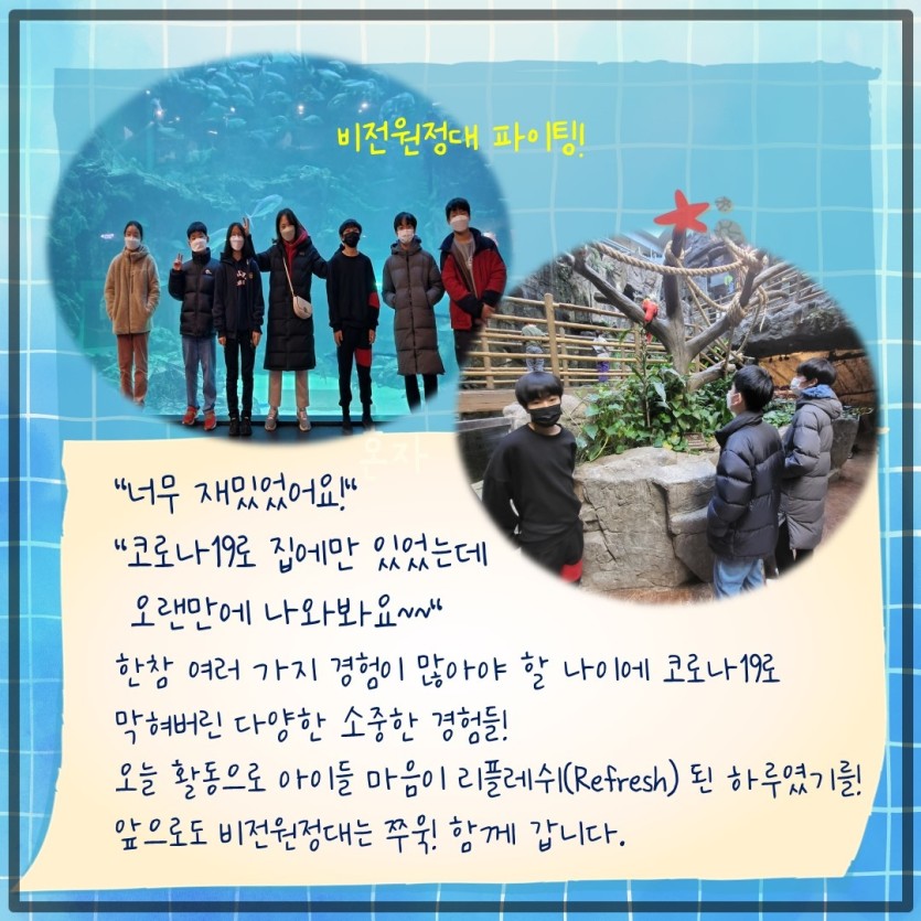 꿈디자이너 사업 비전원정대 활동!(일산 아쿠아플라넷) 페이지 정보 작성자 관리자 댓글 0건 조회541회 작성일 21-12-07 18:45 목록 본문 이전글따뜻한 겨울나기 지역노점상인 털모자 나눔 행사 진행 21.12.07 다음글2021년 장애인일자리사업 평가회 진행 21.12.06 댓글 0 댓글목록 등록된 댓글이 없습니다.