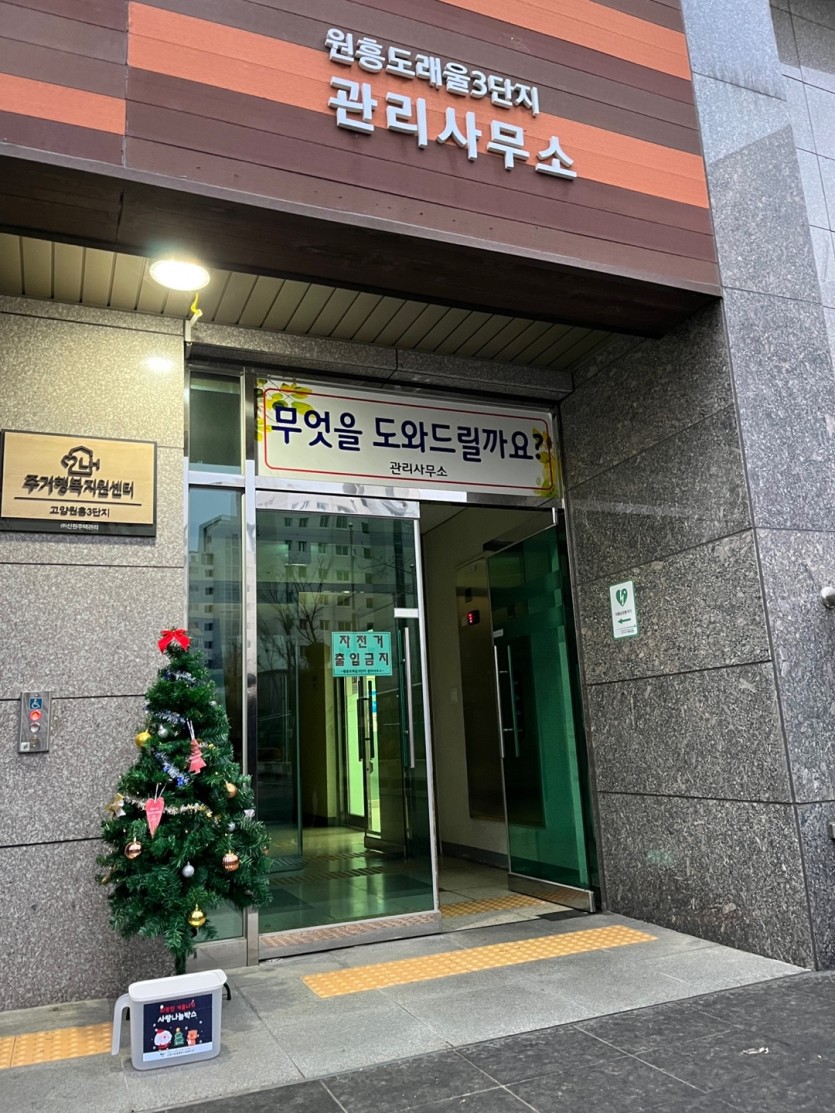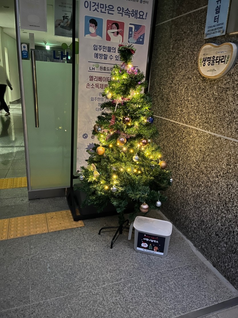 지역사회 인근 아파트 도래울마을 1,3,5 단지와 삼송마을 11,12,14,16단지 관리사무소 앞에 에 희망나눔트리와 사랑나눔박스를 설치하였습니다.