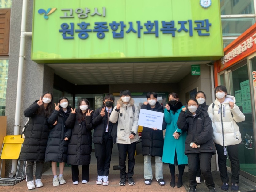 12월 30일(목) 고양동산고등학교 1학년 1반 친구들과 후원금 전달식을 가졌습니다.
