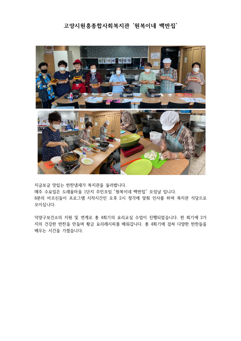 도래울마을 1단지 주민모임 <원복이네 백반집> 페이지 정보 작성자 관리자 댓글 0건 조회590회 작성일 21-09-16 21:42 목록 본문 이전글9월 노노이야기 활동 21.10.08 다음글2021 추석행사 '우리동네 마음모으기-십시일반' 진행 21.09.16 댓글 0 댓글목록 등록된 댓글이 없습니다.
