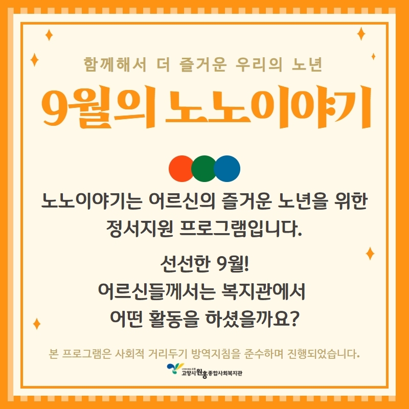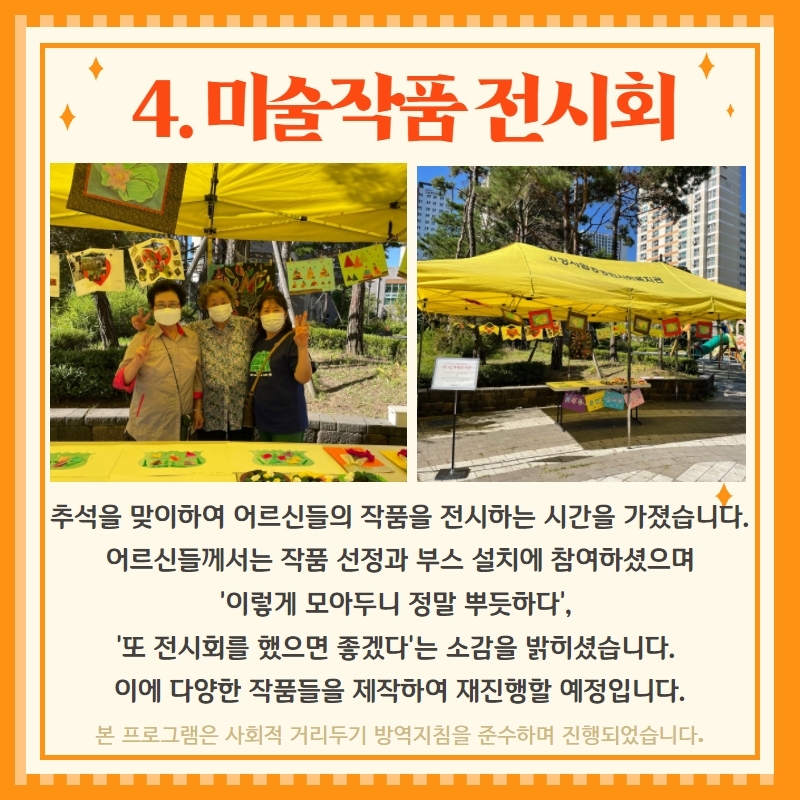 9월 노노이야기 활동 페이지 정보 작성자 관리자 댓글 0건 조회535회 작성일 21-10-08 17:36 목록 본문 이전글장애인 평생교육프로그램 <뉴스포츠> 21.10.12 다음글도래울마을 1단지 주민모임 <원복이네 백반집> 21.09.16 댓글 0 댓글목록 등록된 댓글이 없습니다.