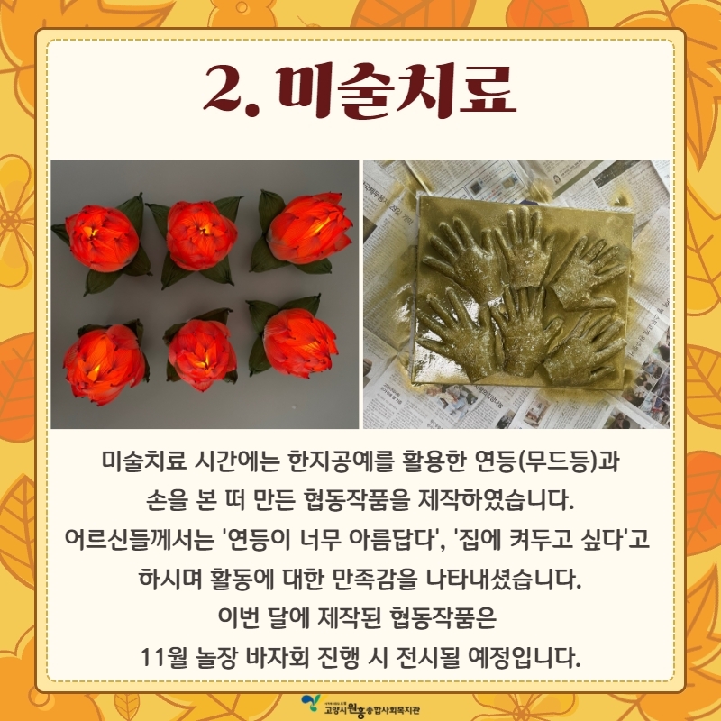 10월 노노이야기 활동 페이지 정보 작성자 관리자 댓글 0건 조회535회 작성일 21-11-08 15:24 목록 본문 이전글2021년 10월 과일봉사단 진행 21.11.11 다음글2021년 이용자 인권교육 진행 21.11.08 댓글 0 댓글목록 등록된 댓글이 없습니다.