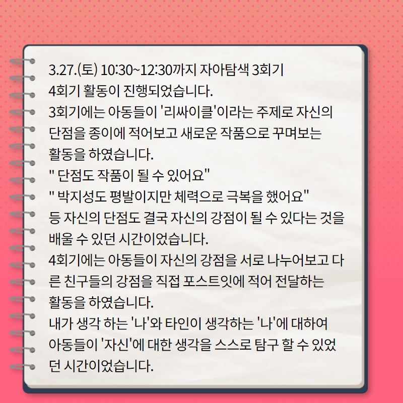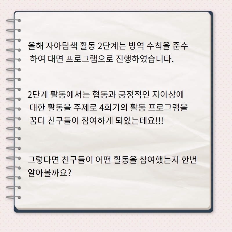 3월 달 꿈디자이너 친구들과 자아탐색 프로그램을 3.13(토) / 3.27.(토) 에 대면활동으로 복지관에서 진행을 하게 되었습니다.