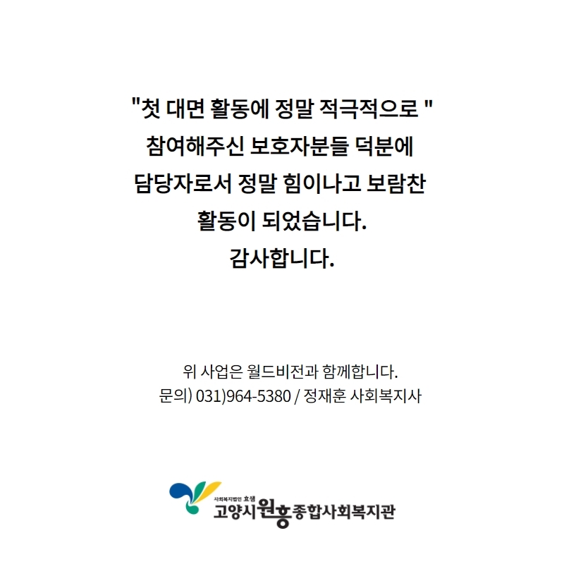 월드비전 꿈디자이너 지원사업 - " 보호자 자조모임 1회기" 페이지 정보 작성자 관리자 댓글 0건 조회541회 작성일 21-05-26 13:56 목록 본문 이전글월드비전 꿈디자이너 지원사업 - " 비전원정대 2회기" 21.05.26 다음글월드비전 꿈디자이너 지원사업 ' 21년 비전원정대 1회기' 21.05.25 댓글 0 댓글목록 등록된 댓글이 없습니다.