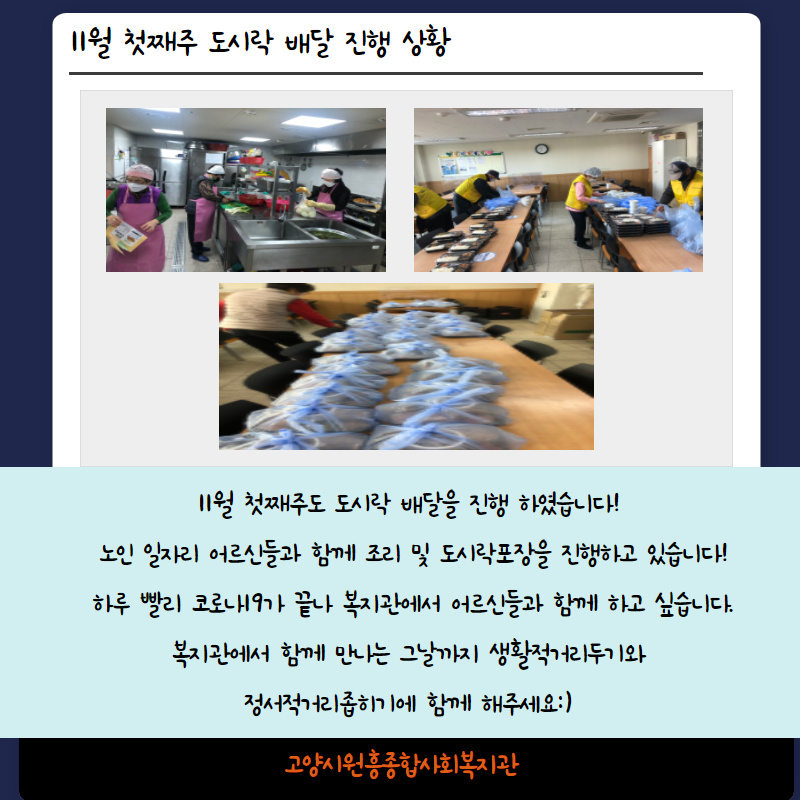 11월 첫째주 경로식당 이야기 페이지 정보 작성자 관리자 댓글 0건 조회494회 작성일 20-11-06 13:22 목록 본문 이전글no.2 뉴스 <원흥일보> 20.11.13 다음글아동독서활동프로그램 "키움" 이야기 20.11.04 댓글 0 댓글목록 등록된 댓글이 없습니다.