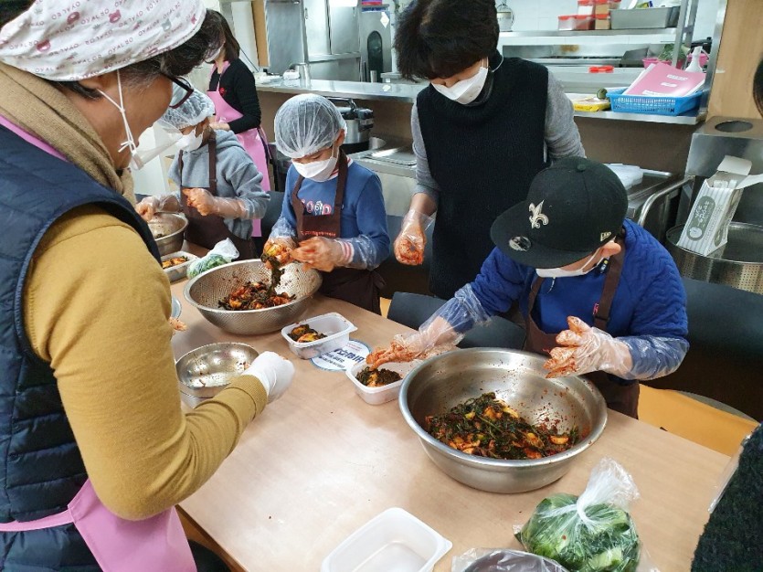 수확한 작물(배추, 무, 쪽파 등)들로 김장을 해보는 시간을 가졌습니다.