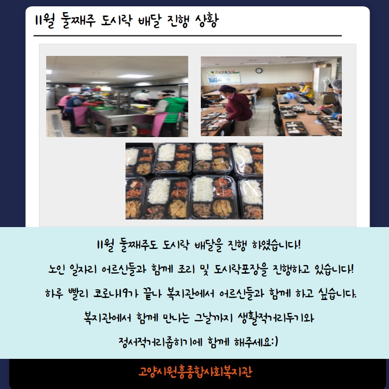 11월 둘째주 경로식당 이야기 페이지 정보 작성자 관리자 댓글 0건 조회492회 작성일 20-11-17 10:16 목록 본문 이전글11월 셋째주 경로식당 이야기 20.11.20 다음글2020년 이마트 트레이더스 고양점과 함께 동절기지원사업 "마음愛온도" 20.11.16 댓글 0 댓글목록 등록된 댓글이 없습니다.