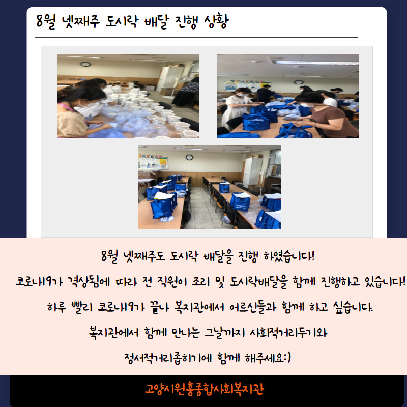 8월 넷째주 경로식당 이야기 페이지 정보 작성자 관리자 댓글 0건 조회495회 작성일 20-08-31 14:30 목록 본문 이전글8월 다섯째주 경로식당 이야기 20.09.07 다음글8월 셋째주 경로식당 이야기 20.08.24 댓글 0 댓글목록 등록된 댓글이 없습니다.